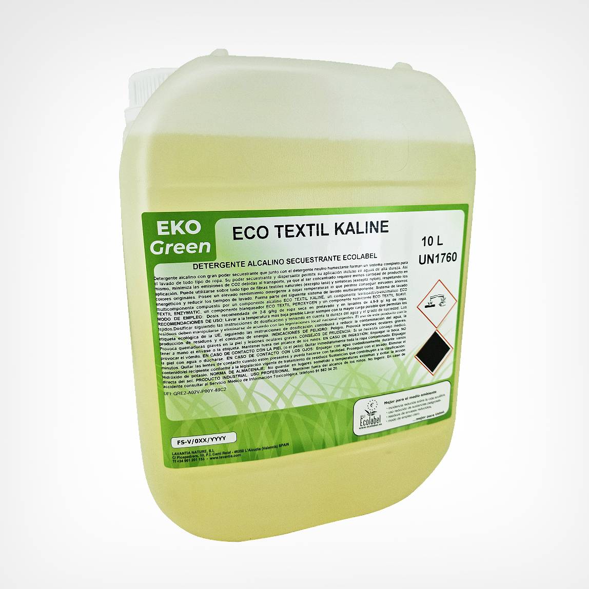 Forma parte del siguiente sistema de lavado multicomponente: Sistema de lavado multicomponente compuesto por un componente alcalino ECO TEXTIL KALINE, un componente tensioactivo-enzimático ECO TEXTIL ENZYMATIC, un componente blanqueador ECO TEXTIL PEROXYGEN y un componente suavizante ECO TEXTIL SUAVI.